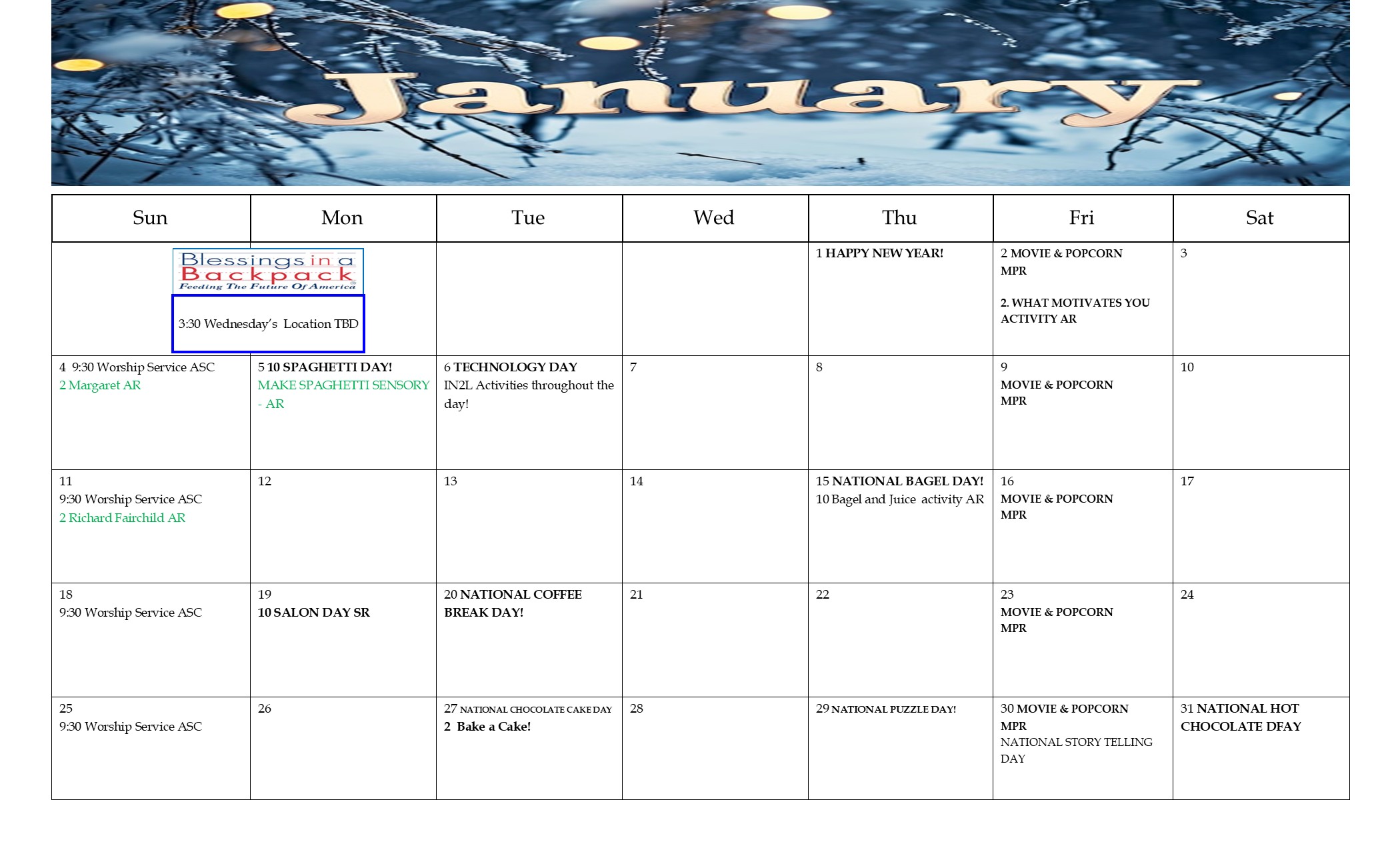 The Pines AL Activity January