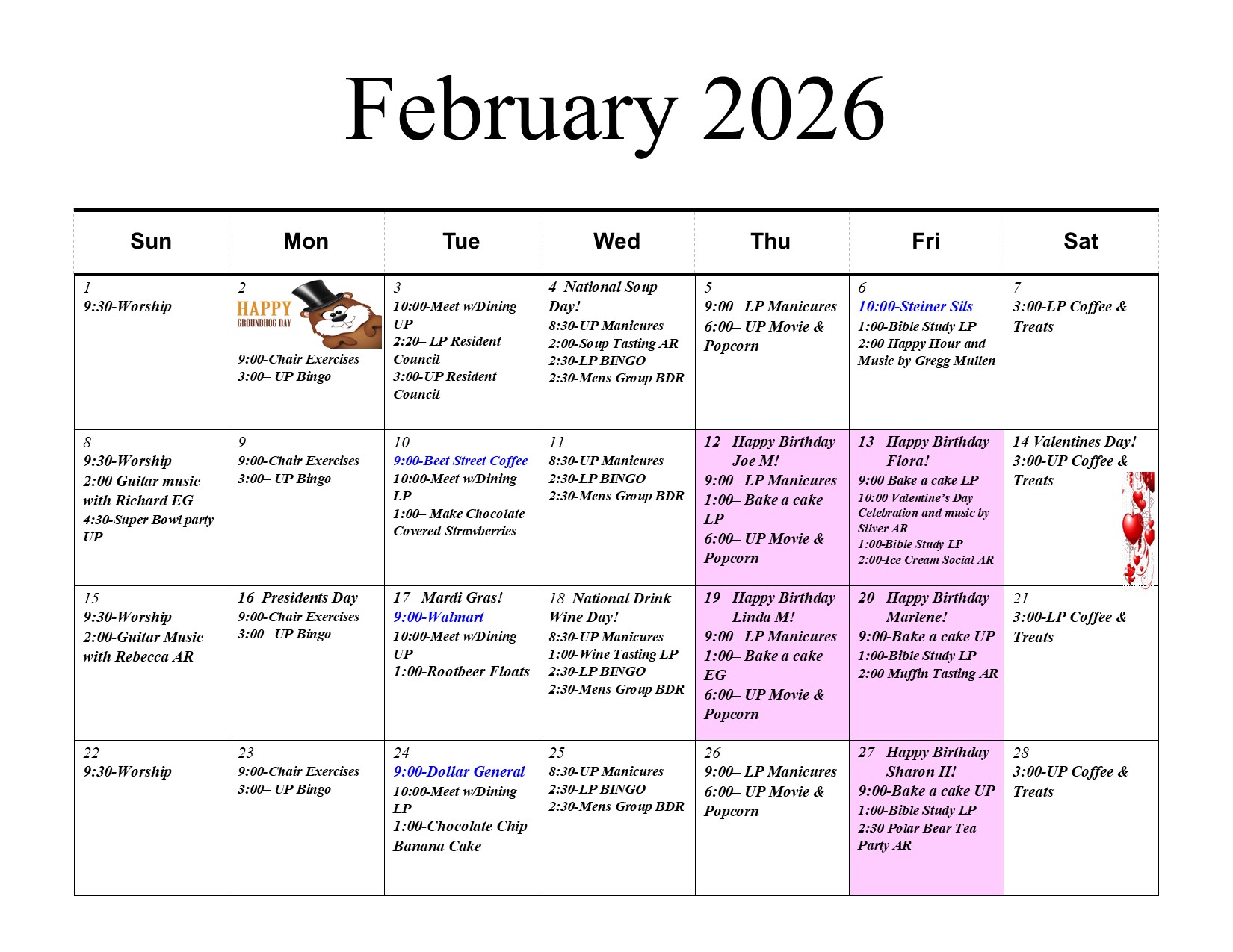 The Pines AL Activity February