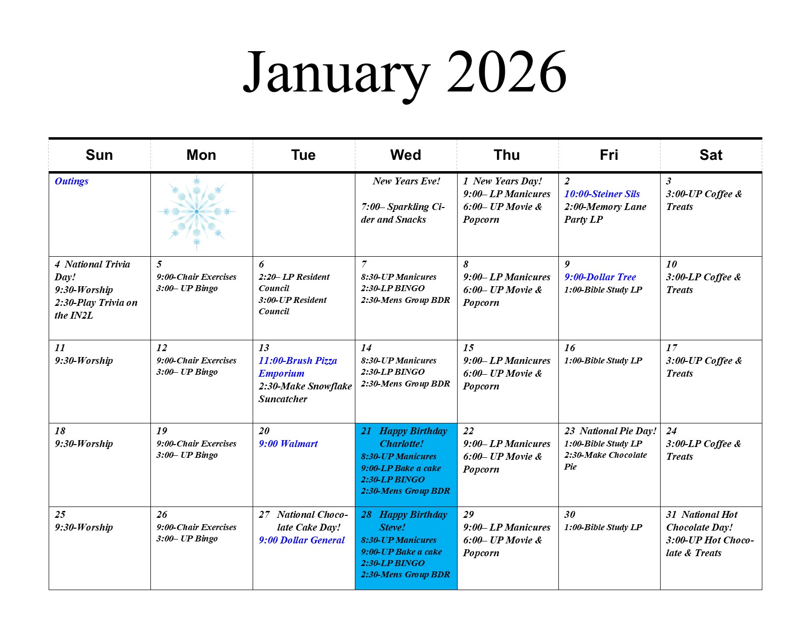 View the most recent Family Newsletter or Assisted Living newsletter here.